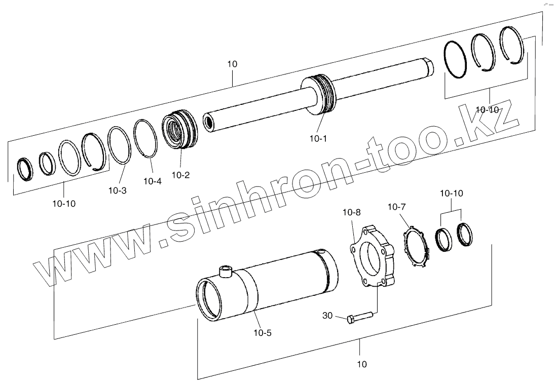 Каталог запасных частей к технике: Doosan DX140W. STEERING CYLINDER - FRONT (5001~8165)