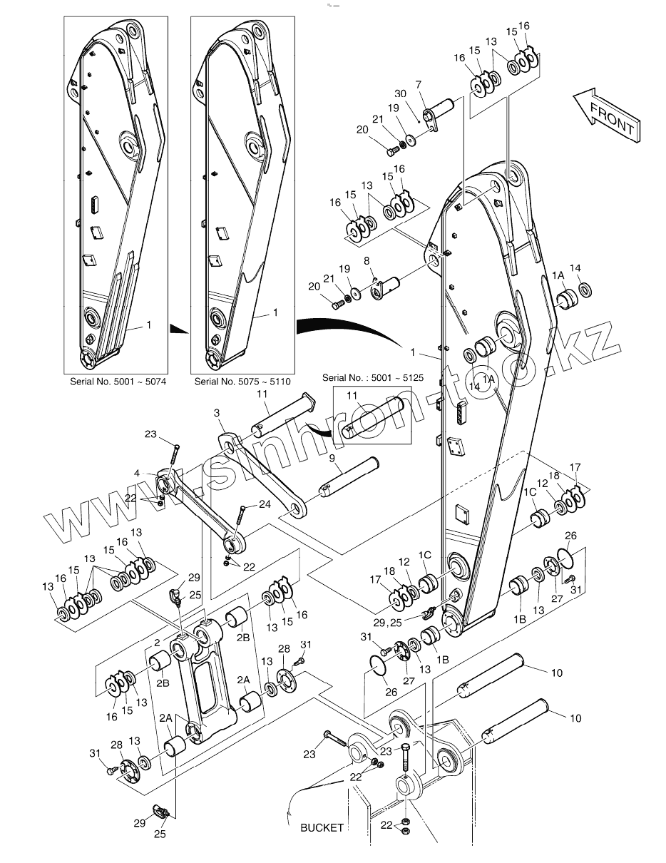 Каталог запасных частей к технике: Doosan DX225LC. ARM - 2.5m