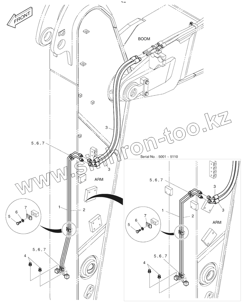 Каталог запасных частей к технике: Doosan DX225LC. ARM PIPING - ARM 2.0m (QUICK CLAMP)