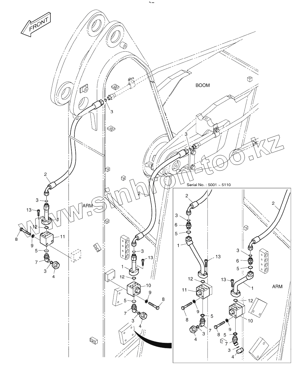 Каталог запасных частей к технике: Doosan DX225LC. ARM PIPING - ARM 2.0m (ROTATING)