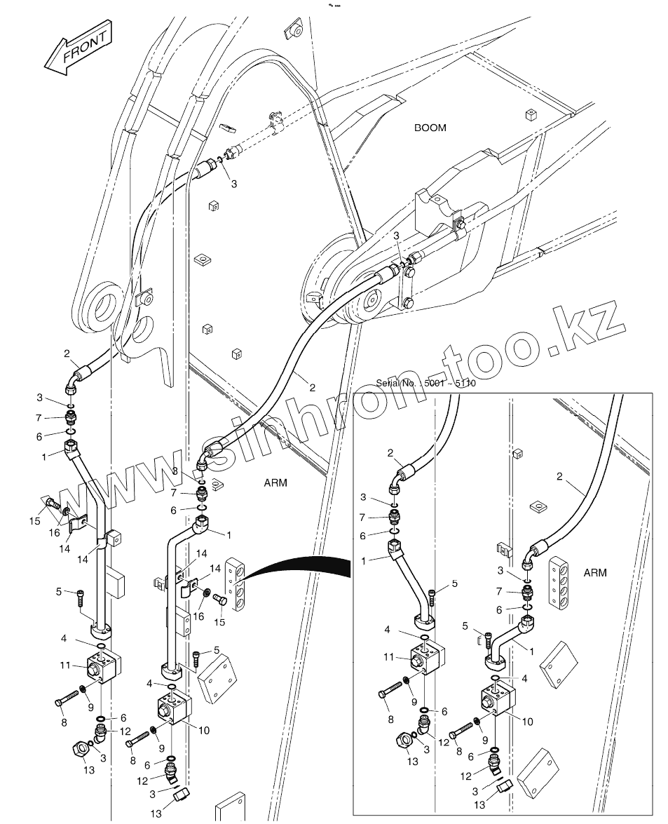 Каталог запасных частей к технике: Doosan DX225LC. ARM PIPING - ARM 2.5m (ROTATING)