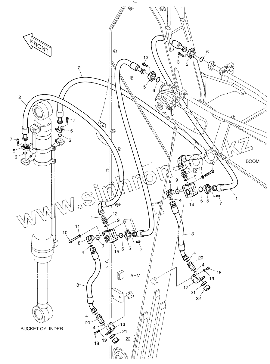 Каталог запасных частей к технике: Doosan DX225LC. ARM PIPING - ARM 3.5m (CLAMSHELL)