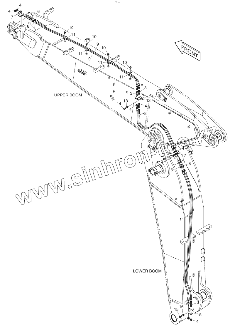 Каталог запасных частей к технике: Doosan DX225LC. ARTI. BOOM PIPING - QUICK FIT
