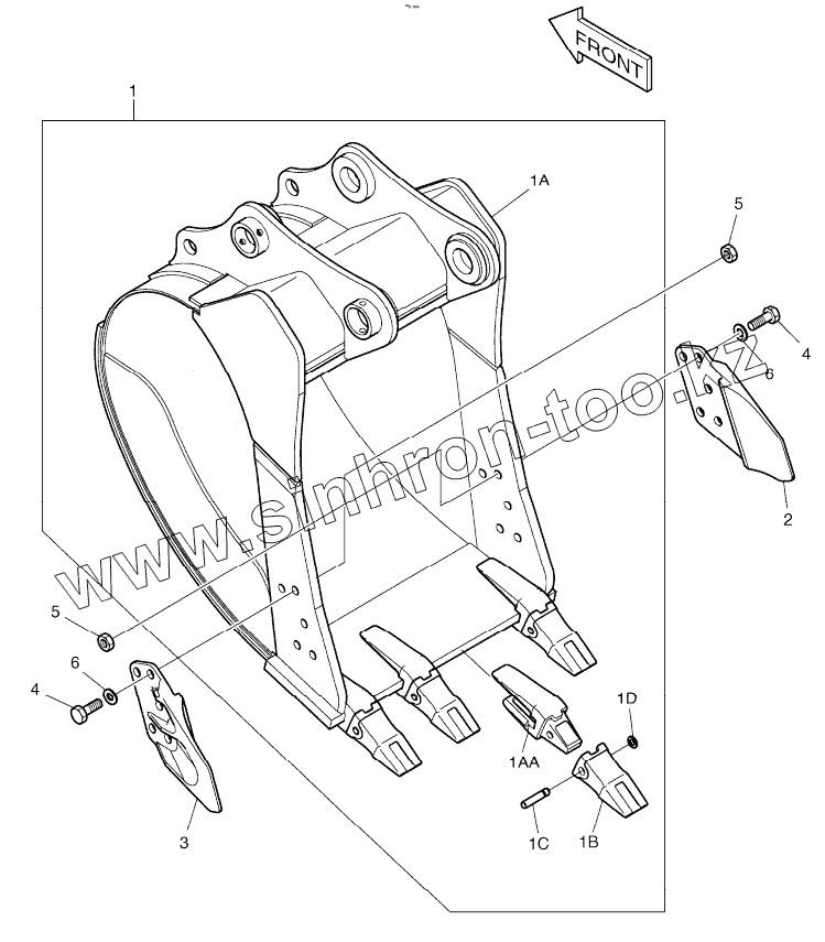 Каталог запасных частей к технике: Doosan DX225LC. BUCKET ASSY-0.67m3 (36") - SIDE PIN