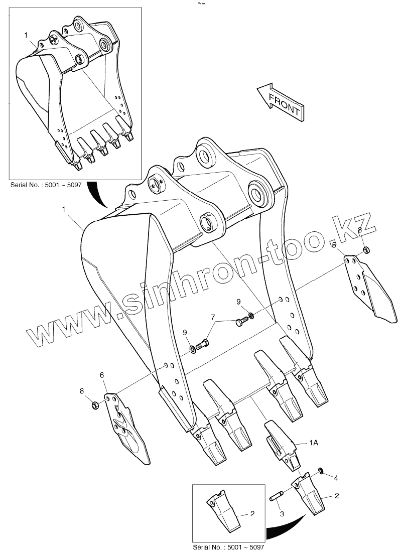 Каталог запасных частей к технике: Doosan DX225LC. BUCKET ASSY-0.72 m3