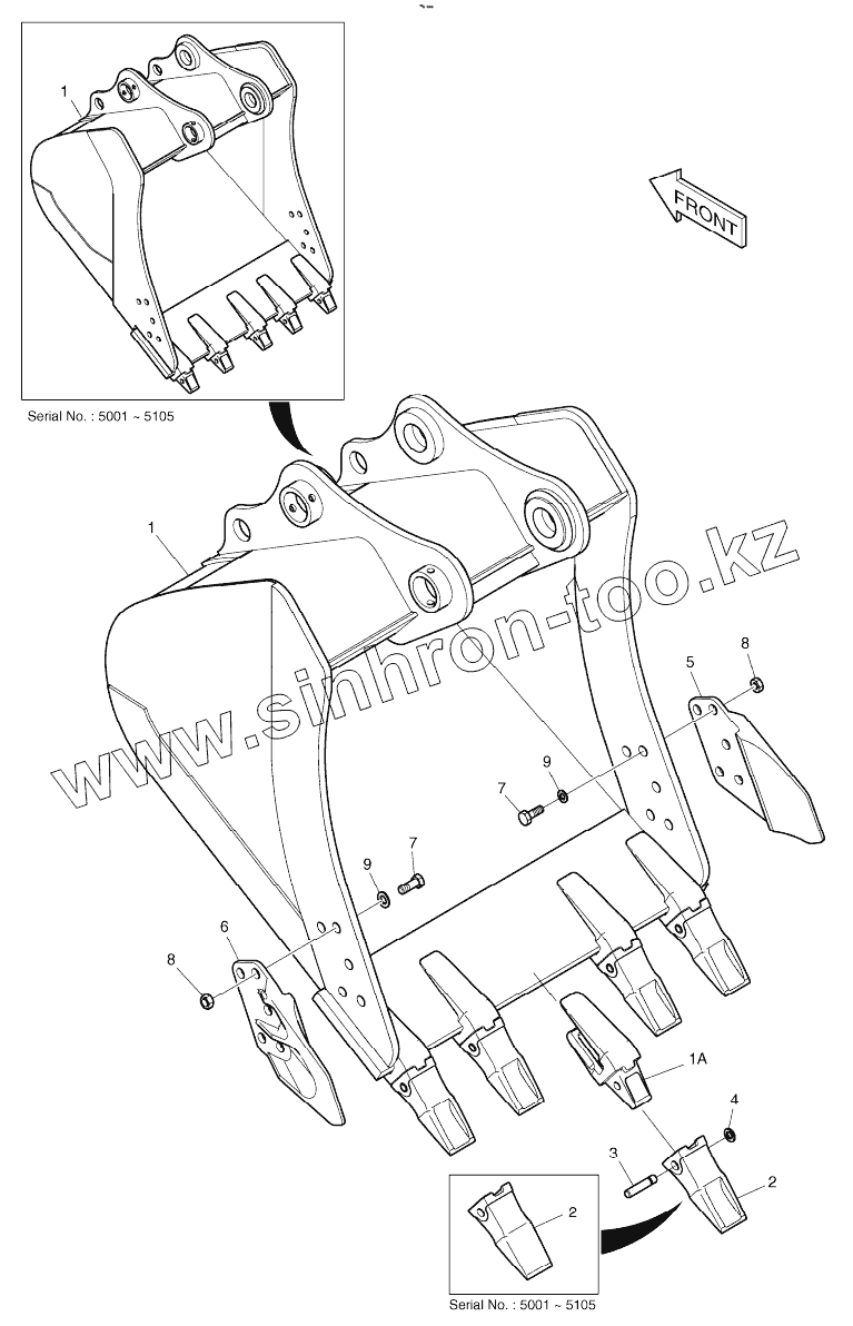 Каталог запасных частей к технике: Doosan DX225LC. BUCKET ASSY-0.8 m3
