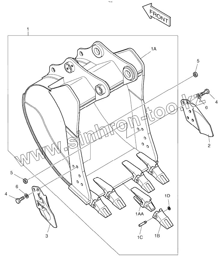 Каталог запасных частей к технике: Doosan DX225LC. BUCKET ASSY-0.8m3 (42") - SIDE PIN