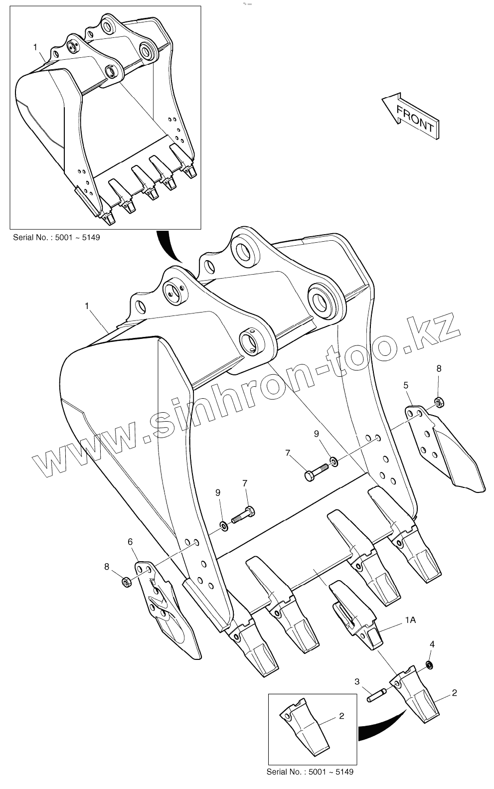 Каталог запасных частей к технике: Doosan DX225LC. BUCKET ASSY-0.95m3