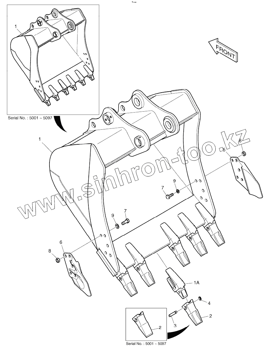 Каталог запасных частей к технике: Doosan DX225LC. BUCKET ASSY-1.0 m3