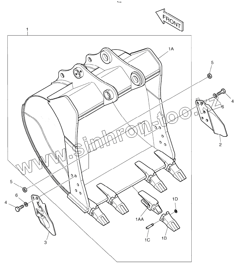 Каталог запасных частей к технике: Doosan DX225LC. BUCKET ASSY-1.1m3 (54") - SIDE PIN