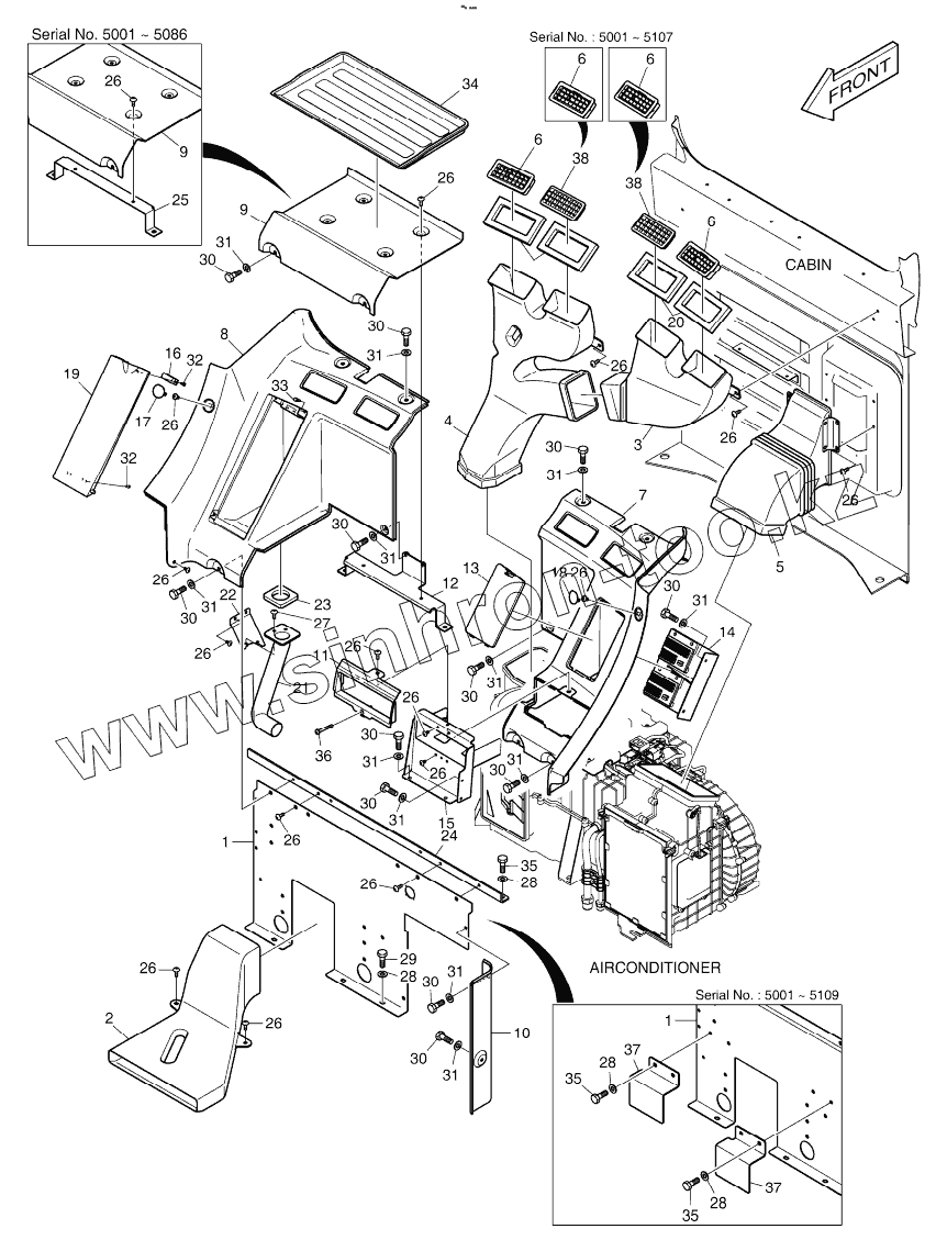 Каталог запасных частей к технике: Doosan DX225LC. HEATER COVER