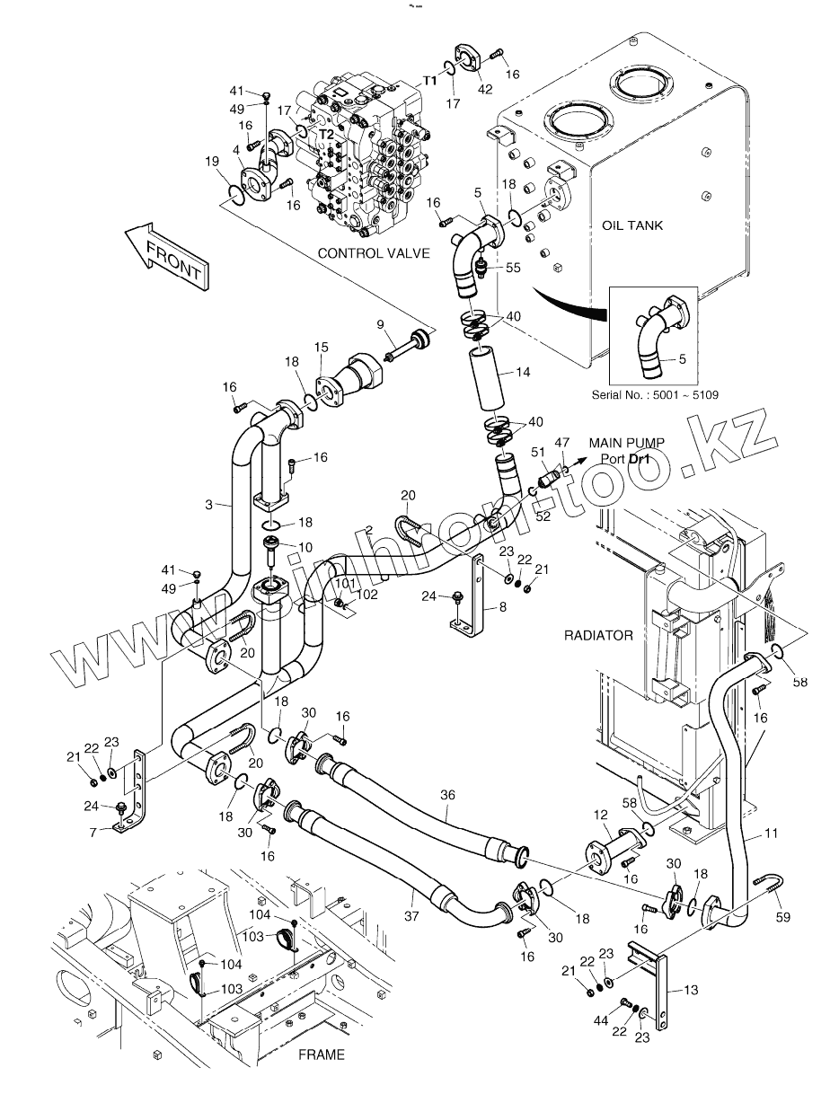 Каталог запасных частей к технике: Doosan DX225LC. OIL COOLER PIPING