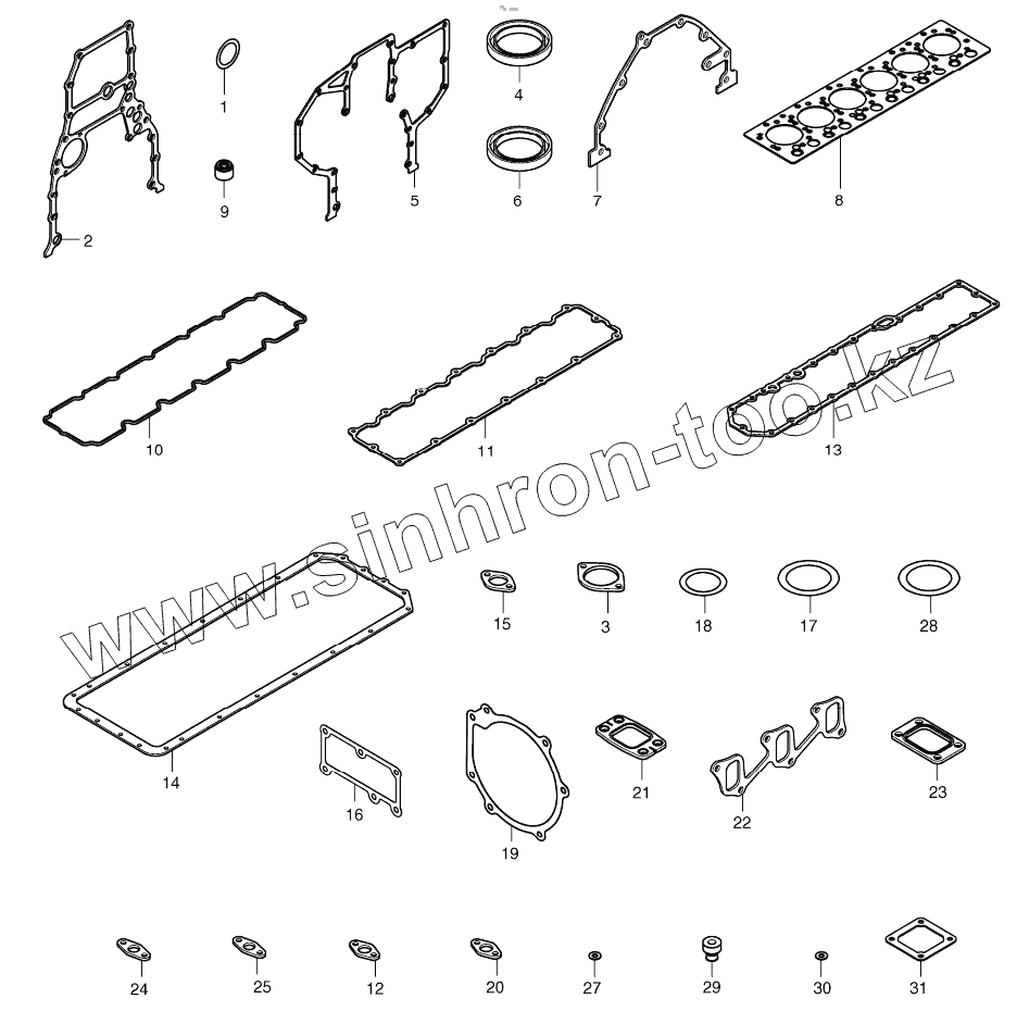 Каталог запасных частей к технике: Doosan DX225LC. OVERHAUL GASKET KIT - ALL