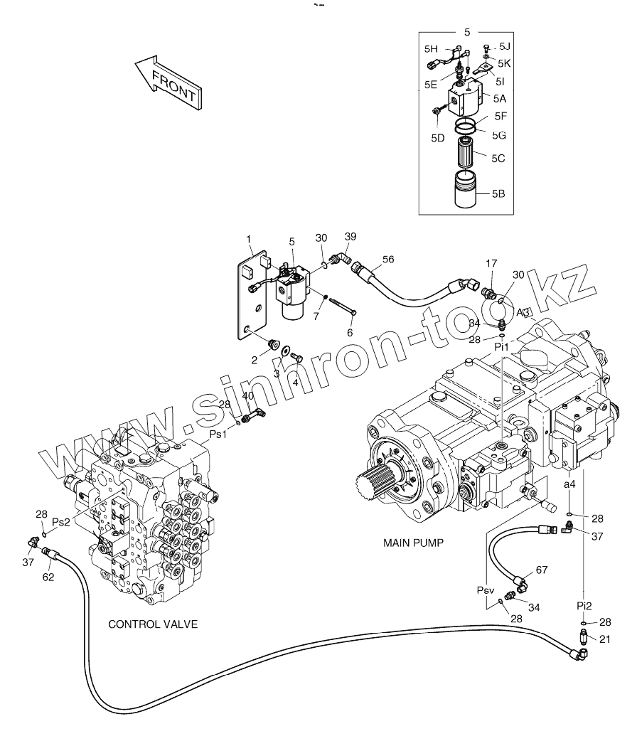 Каталог запасных частей к технике: Doosan DX225LC. PILOT PIPING (1)