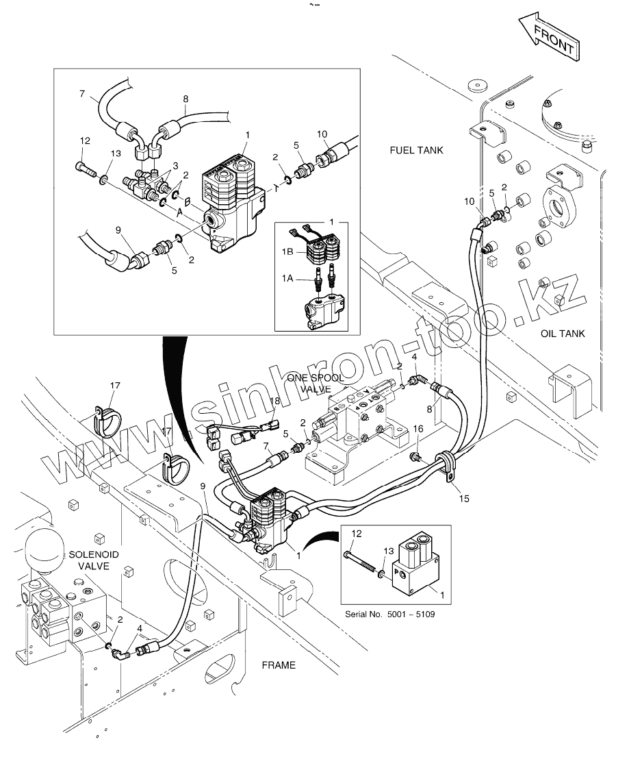 Каталог запасных частей к технике: Doosan DX225LC. PILOT PIPING - ROTATING