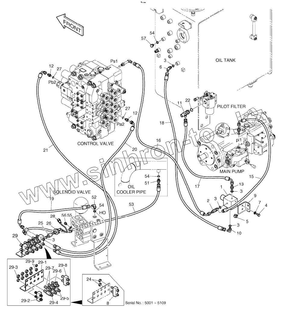 Каталог запасных частей к технике: Doosan DX225LC. PILOT PIPING - TWO AND ONE WAY