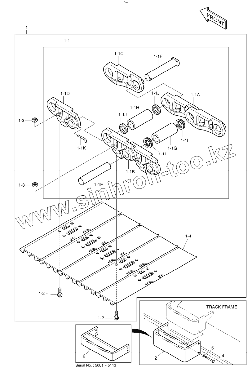 Каталог запасных частей к технике: Doosan DX225LC. TRACK SHOE ASSY - 800G