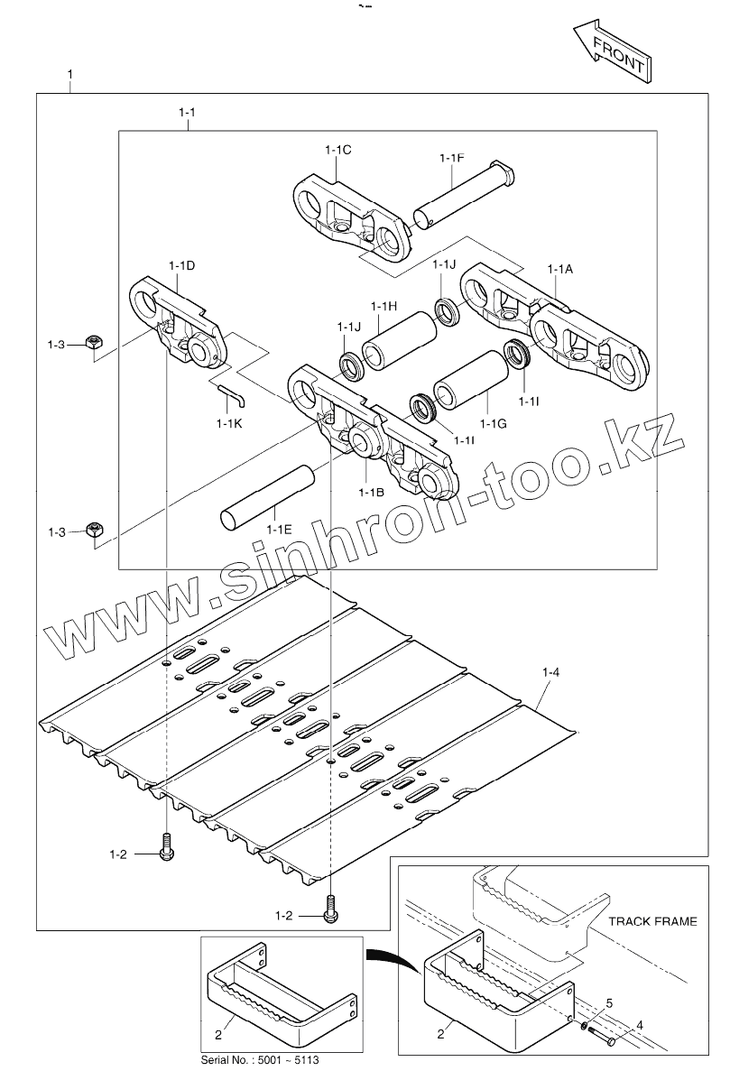 Каталог запасных частей к технике: Doosan DX225LC. TRACK SHOE ASSY - 900G