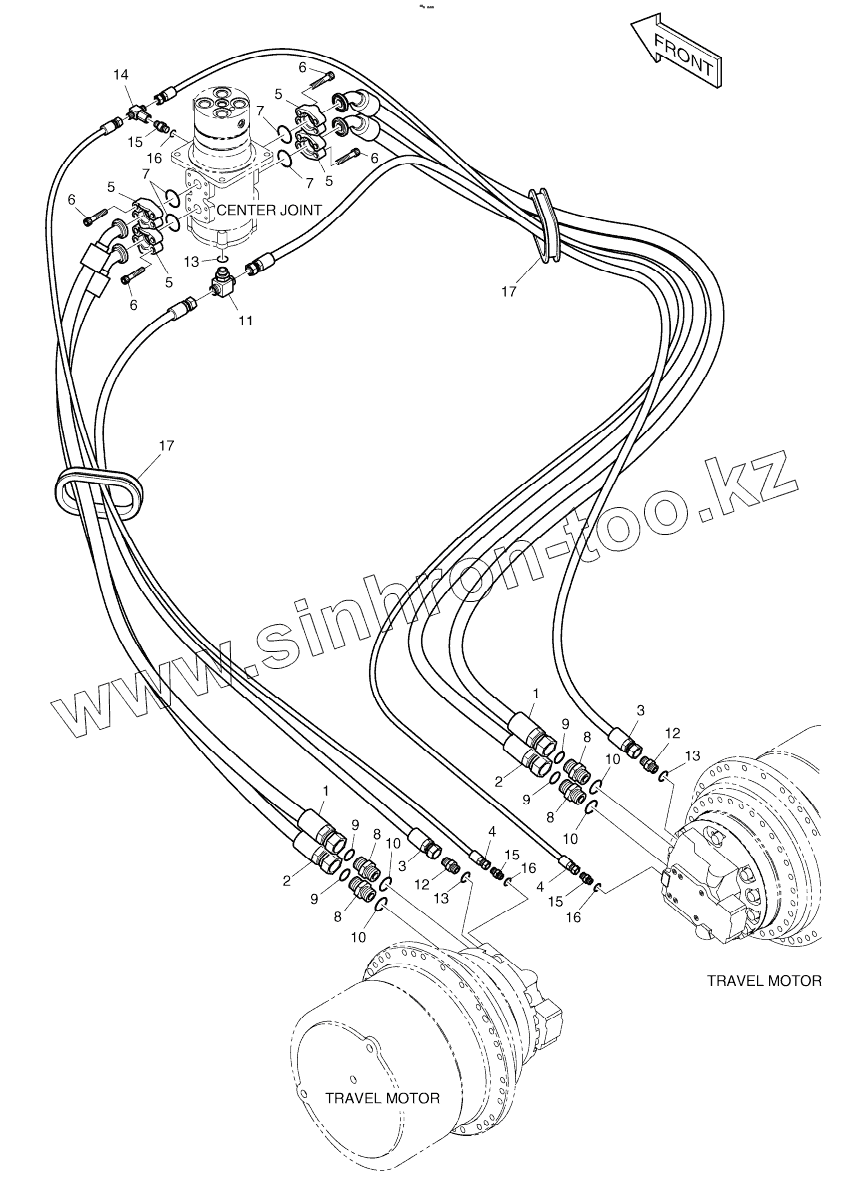 Каталог запасных частей к технике: Doosan DX225LC. TRAVEL PIPING - NARROW TRACK