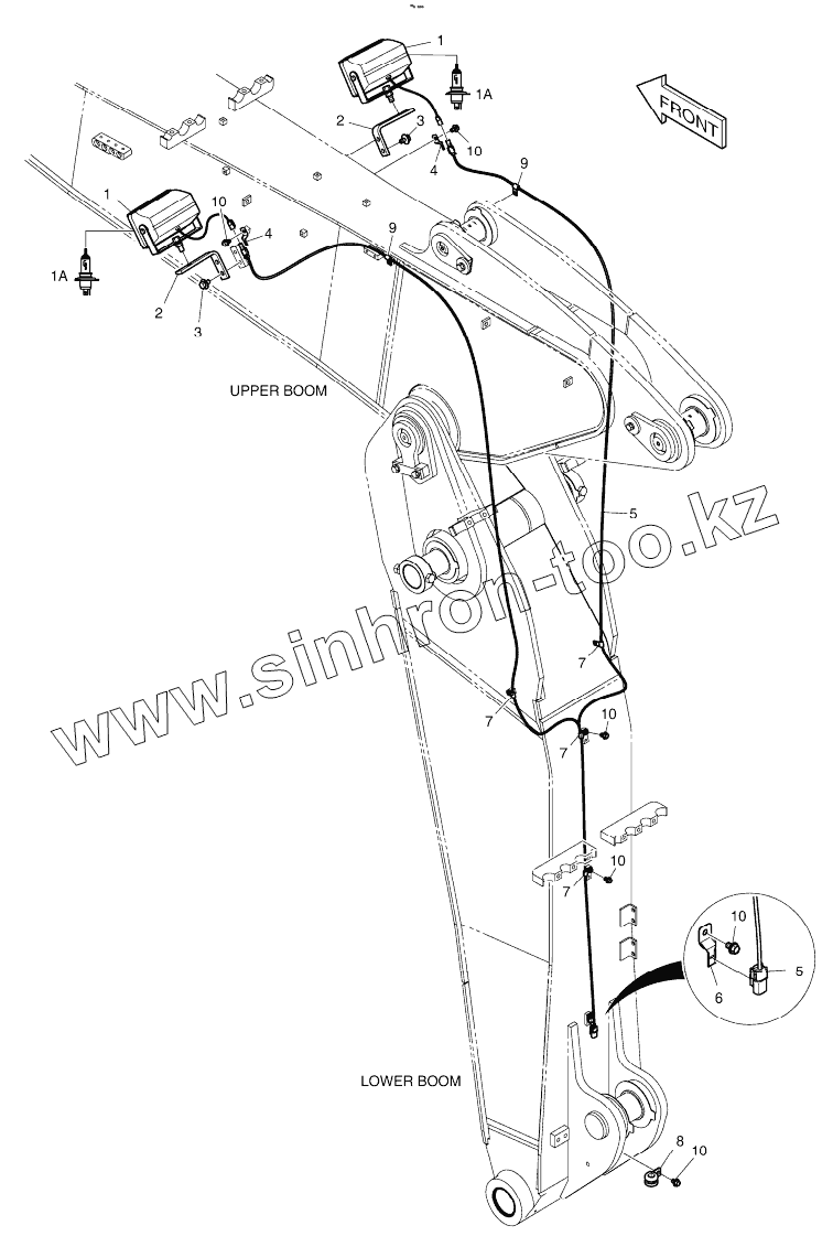 Каталог запасных частей к технике: Doosan DX225LC. WORKING LAMP - ARTI. BOOM