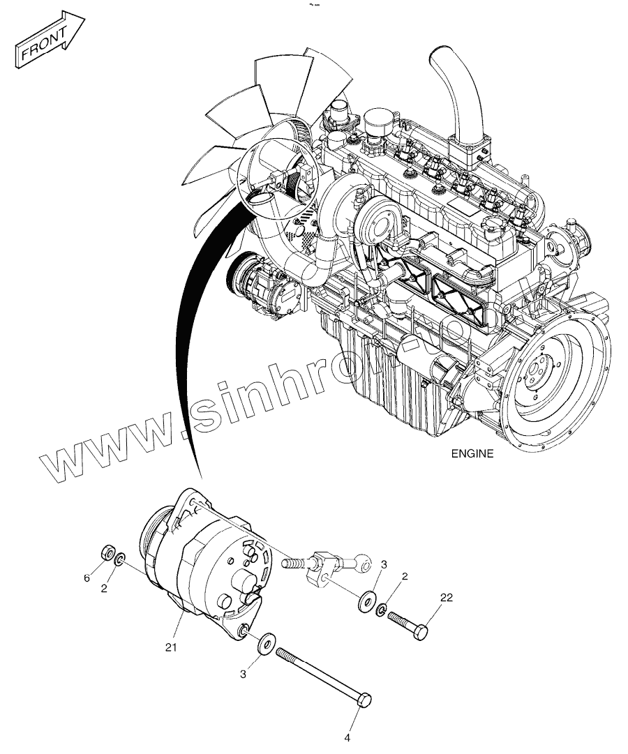 Каталог запасных частей к технике: Doosan DX225LCA. ALTERNATOR - 50A