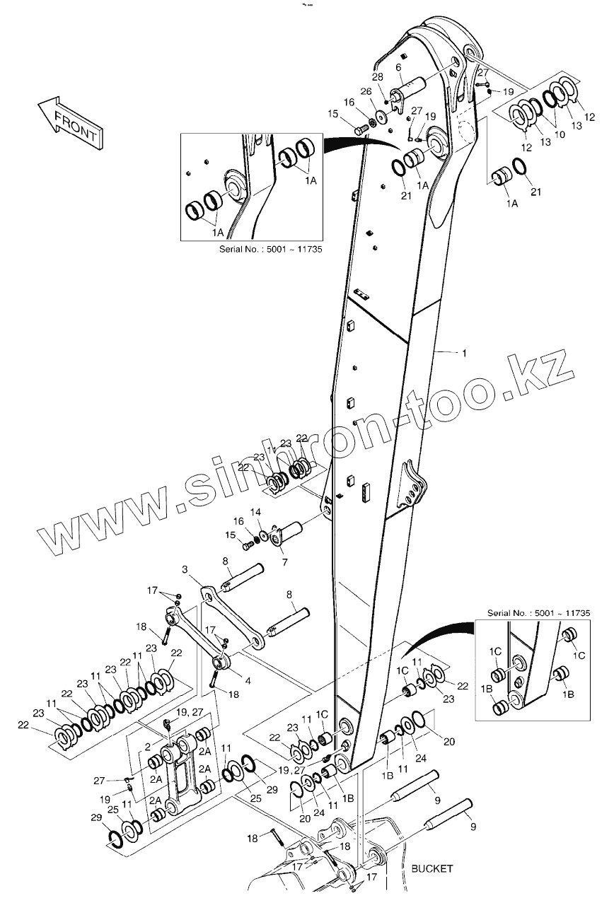Каталог запасных частей к технике: Doosan DX225LCA. ARM - 6.2m