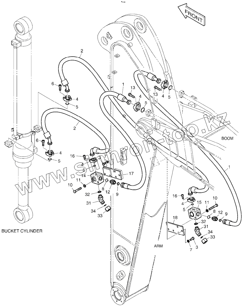 Каталог запасных частей к технике: Doosan DX225LCA. ARM PIPING - ARM 2.0m (CLAMSHELL)