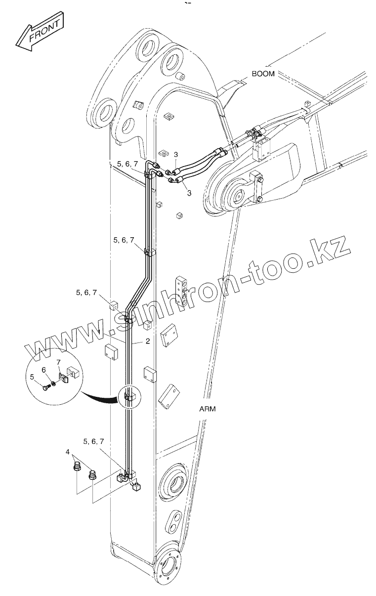 Каталог запасных частей к технике: Doosan DX225LCA. ARM PIPING - ARM 2.0m (QUICK CLAMP)