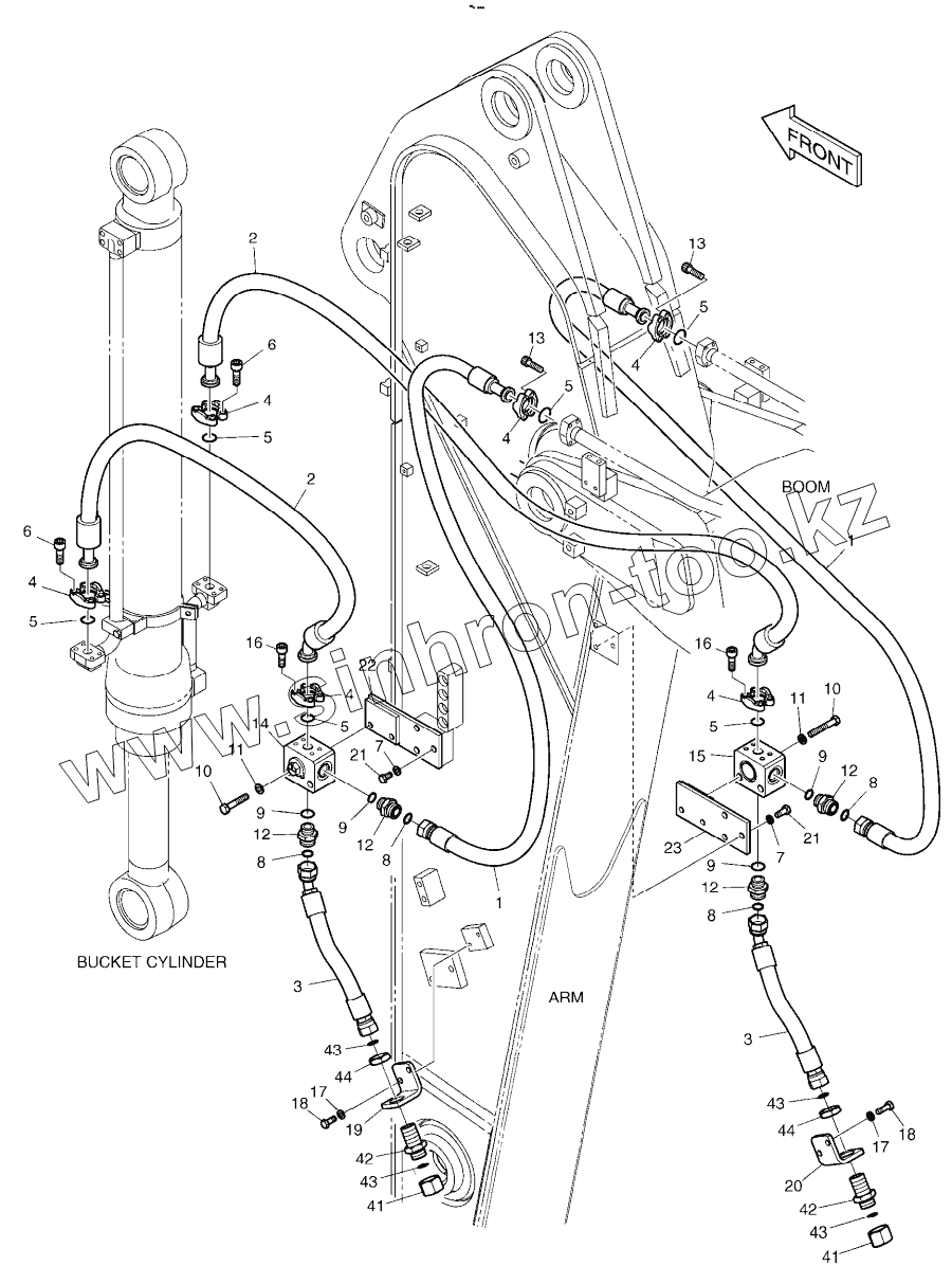 Каталог запасных частей к технике: Doosan DX225LCA. ARM PIPING - ARM 2.4m (CLAMSHELL)