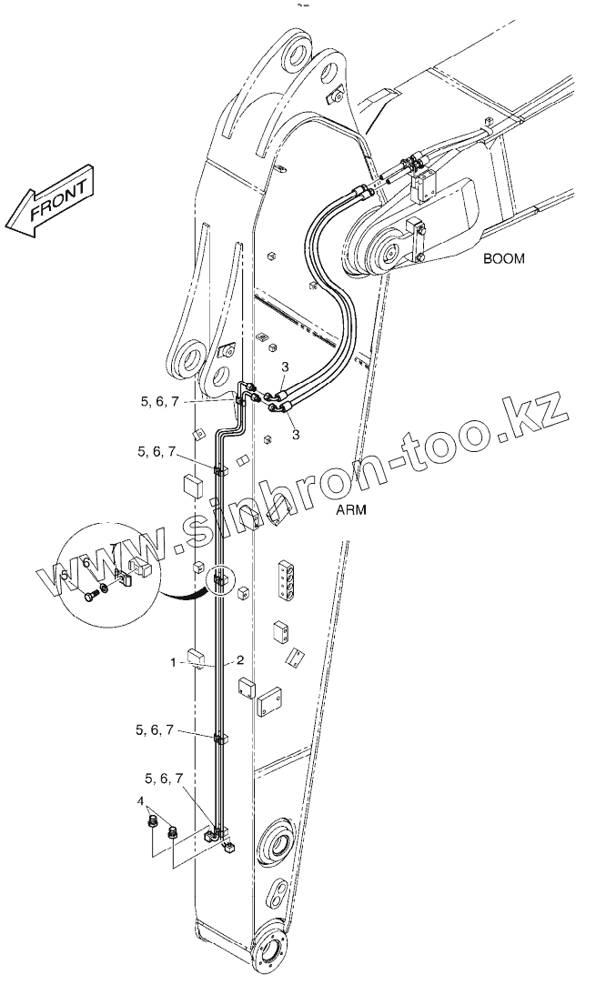Каталог запасных частей к технике: Doosan DX225LCA. ARM PIPING - ARM 2.9m(QUICK CLAMP)