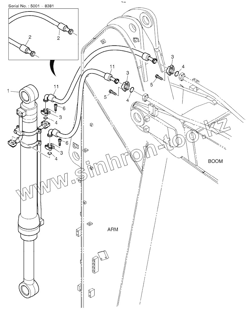Каталог запасных частей к технике: Doosan DX225LCA. ARM PIPING - ARM 3.5m