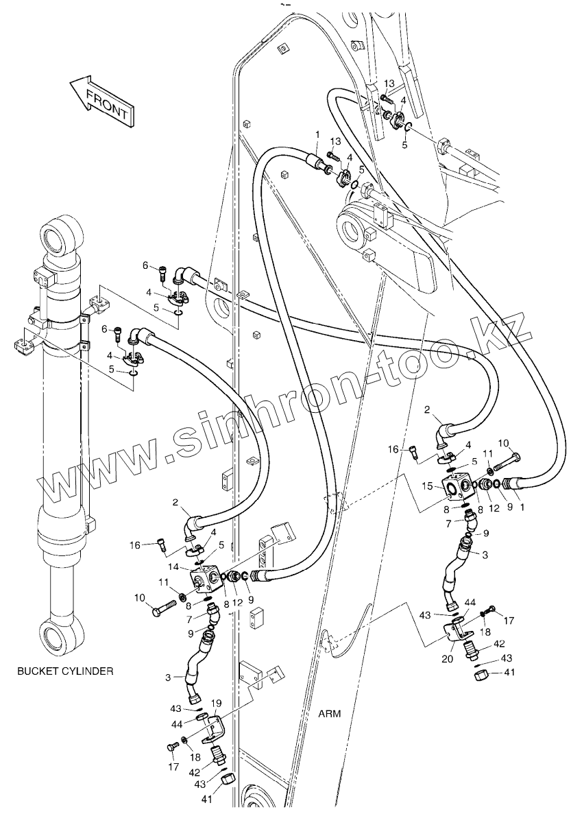 Каталог запасных частей к технике: Doosan DX225LCA. ARM PIPING - ARM 3.5m (CLAMSHELL)