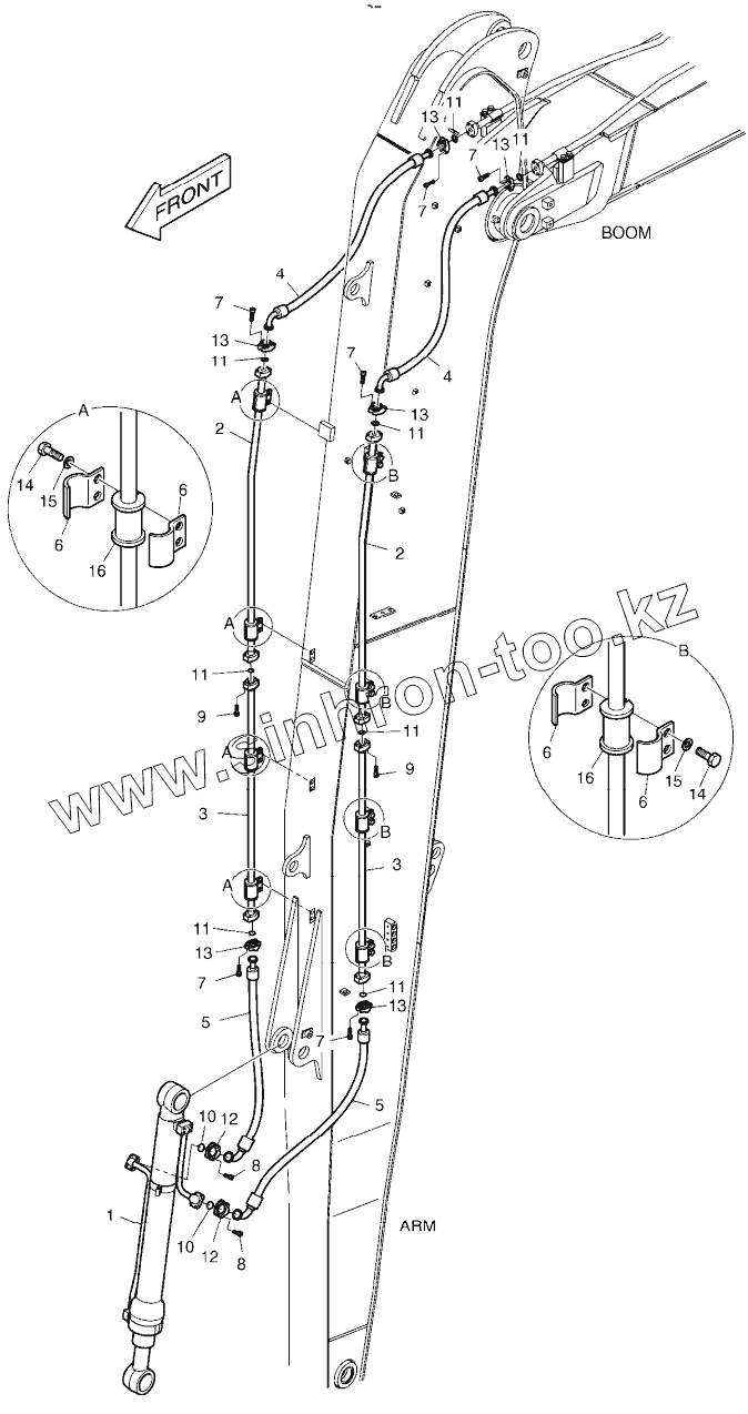 Каталог запасных частей к технике: Doosan DX225LCA. ARM PIPING - ARM 6.2m