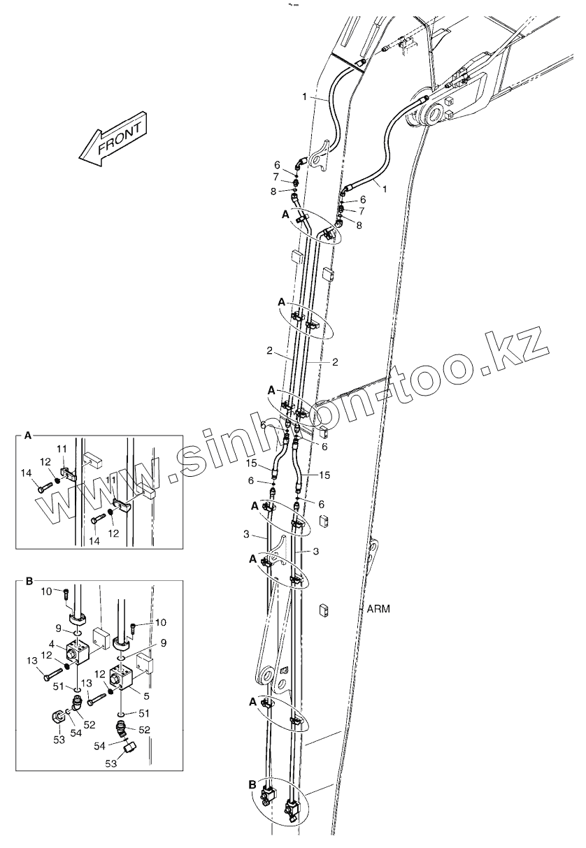 Каталог запасных частей к технике: Doosan DX225LCA. ARM PIPING - ARM 6.2m (ROTATING)