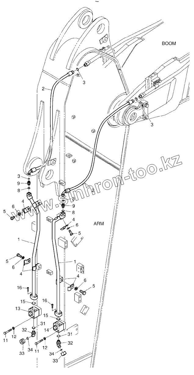 Каталог запасных частей к технике: Doosan DX225LCA. ARM PIPING - ROTATING (ARM 2.9m)