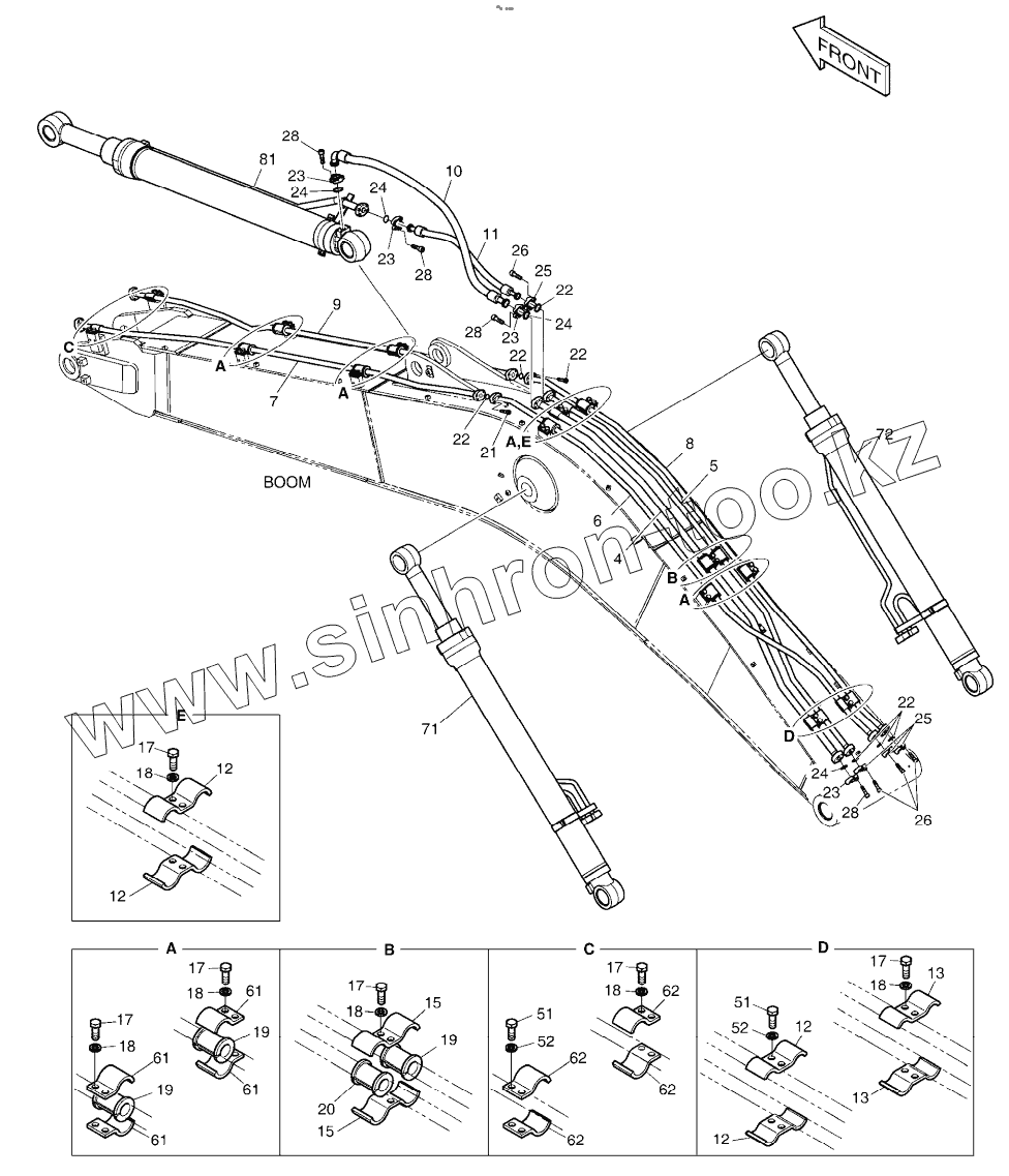 Каталог запасных частей к технике: Doosan DX225LCA. BOOM PIPING