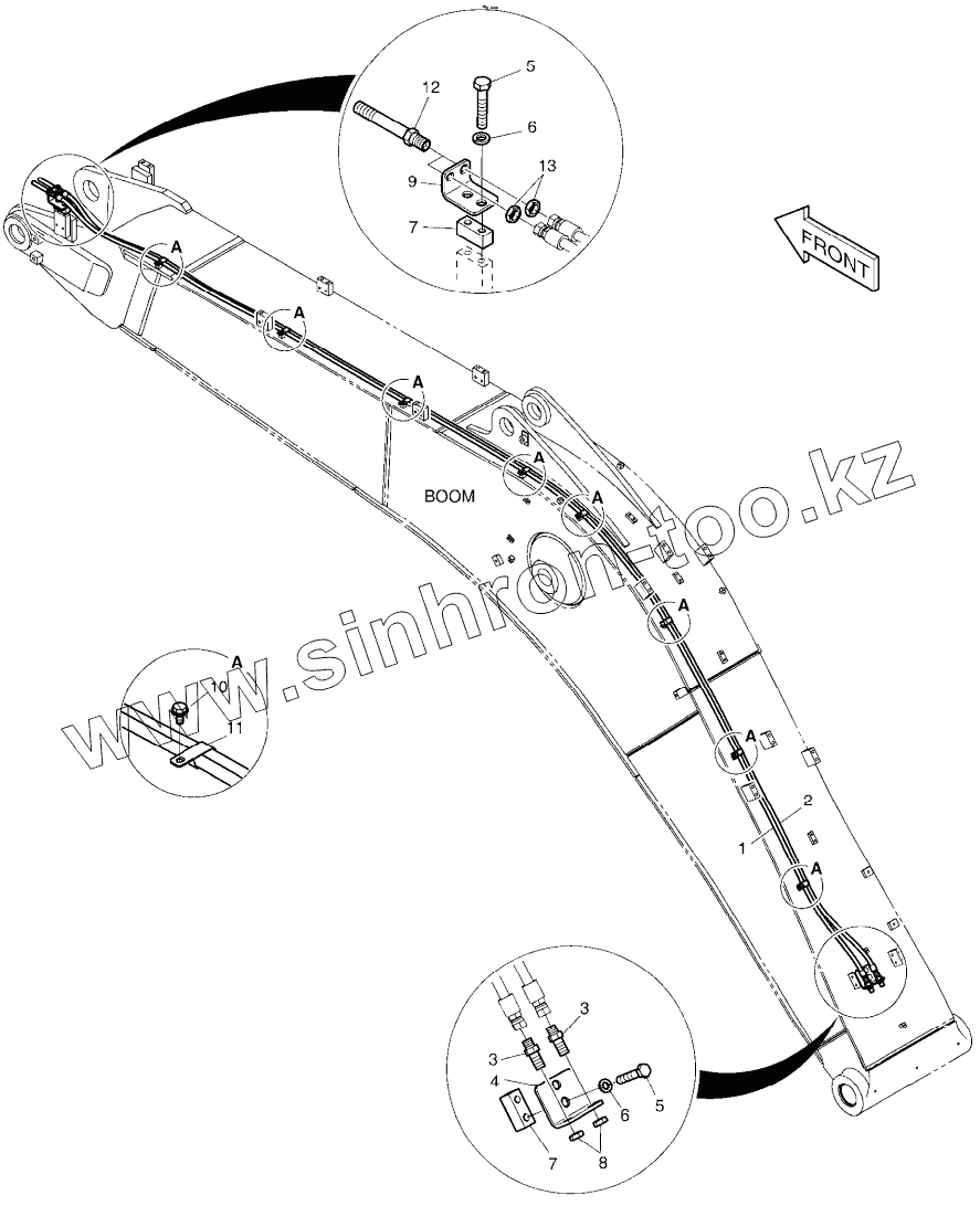 Каталог запасных частей к технике: Doosan DX225LCA. BOOM PIPING - BOOM 5.2m (QUICK FIT)