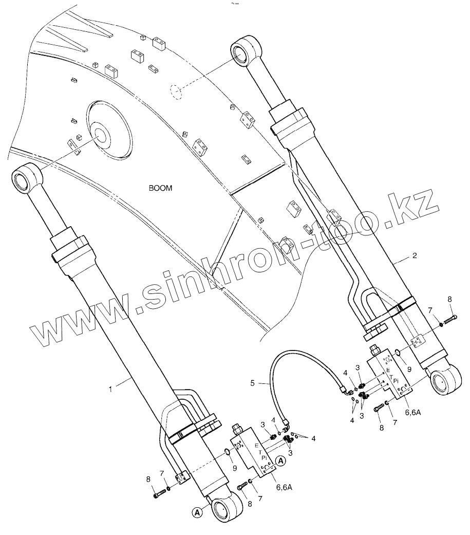 Каталог запасных частей к технике: Doosan DX225LCA. BOOM PIPING - LOCK VALVE