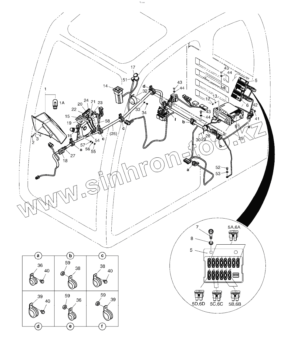 Каталог запасных частей к технике: Doosan DX225LCA. ELECTRIC PARTS - CABIN