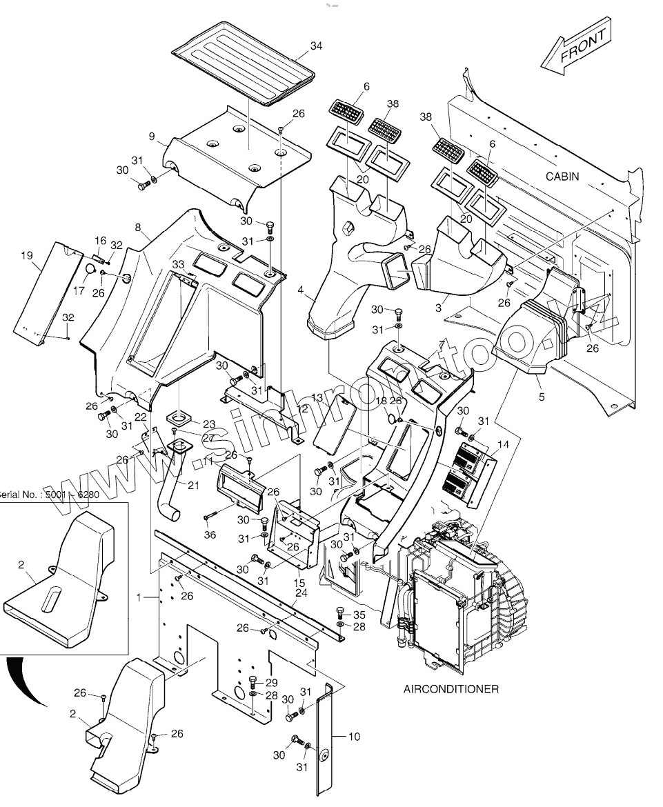 Каталог запасных частей к технике: Doosan DX225LCA. HEATER COVER