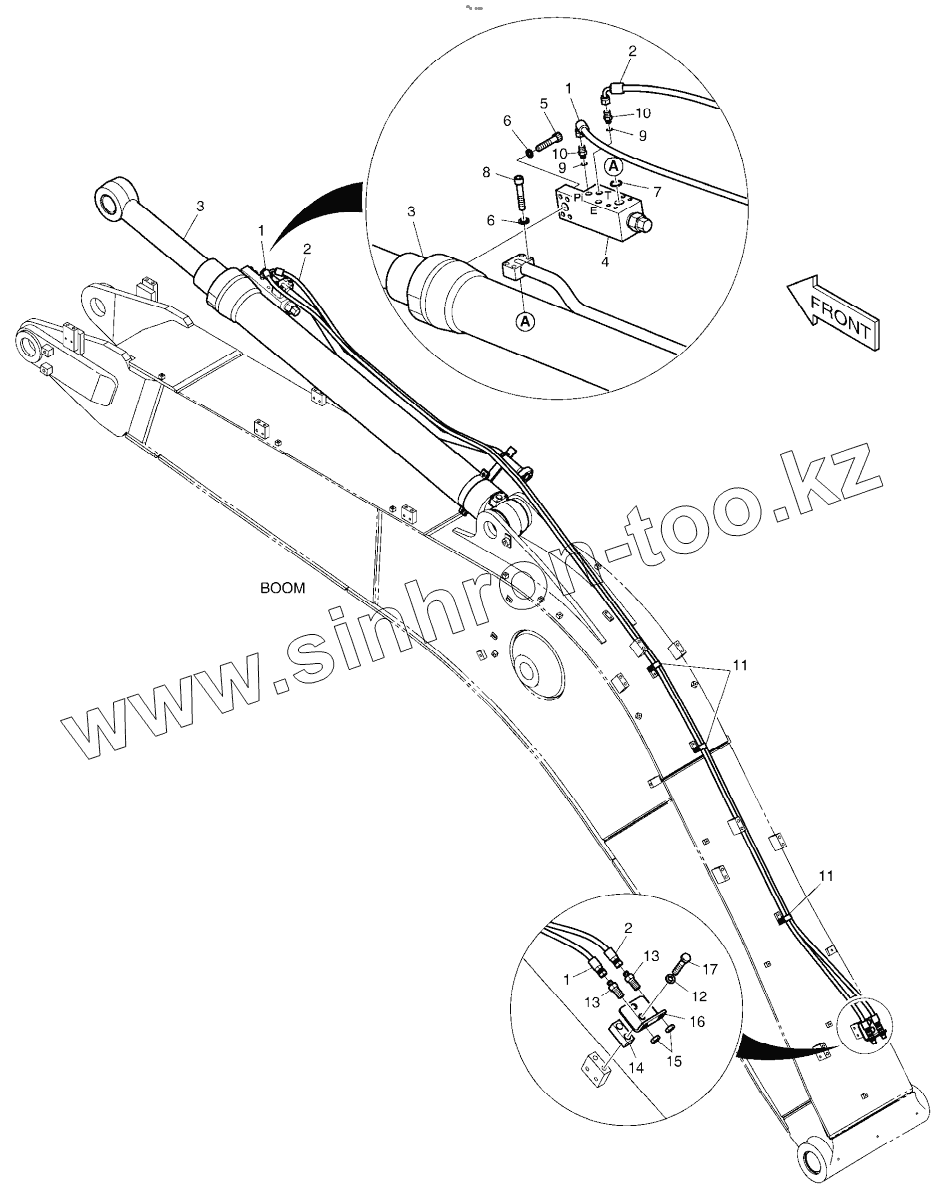 Каталог запасных частей к технике: Doosan DX225LCA. LOCK VALVE PIPING - BOOM 5.2m