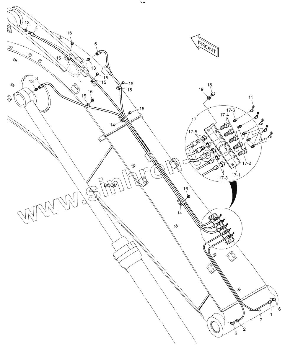 Каталог запасных частей к технике: Doosan DX225LCA. LUBRICATION PIPING - BOOM 5.2m