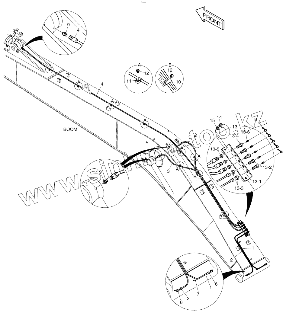 Каталог запасных частей к технике: Doosan DX225LCA. LUBRICATION PIPING - BOOM 8.5m