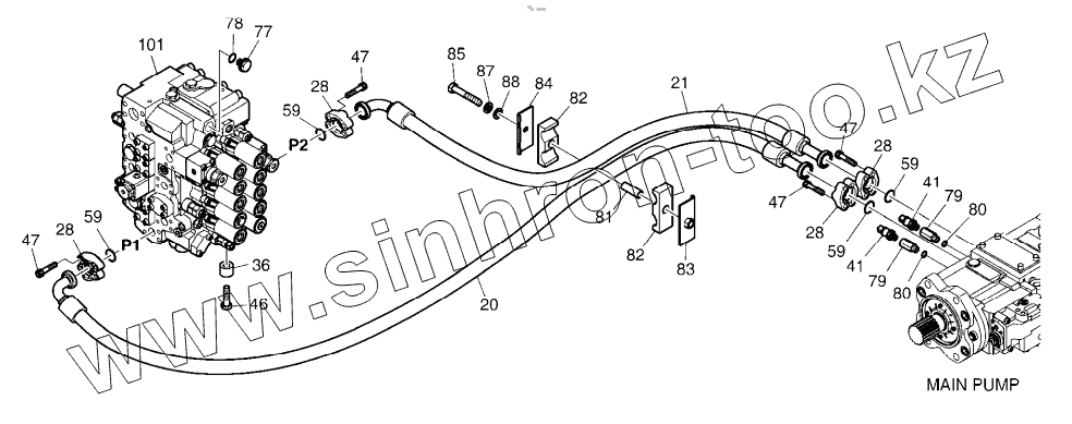 Каталог запасных частей к технике: Doosan DX225LCA. MAIN PIPING (1) - PUMP Serial No. 5001 - 6004