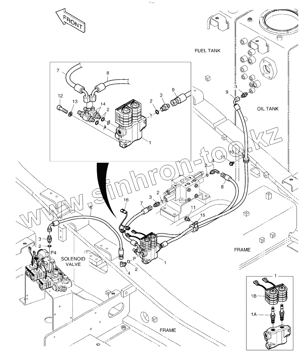 Каталог запасных частей к технике: Doosan DX225LCA. PILOT PIPING (1) - ROTATING