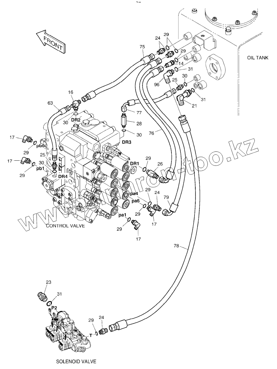 Каталог запасных частей к технике: Doosan DX225LCA. PILOT PIPING (5)