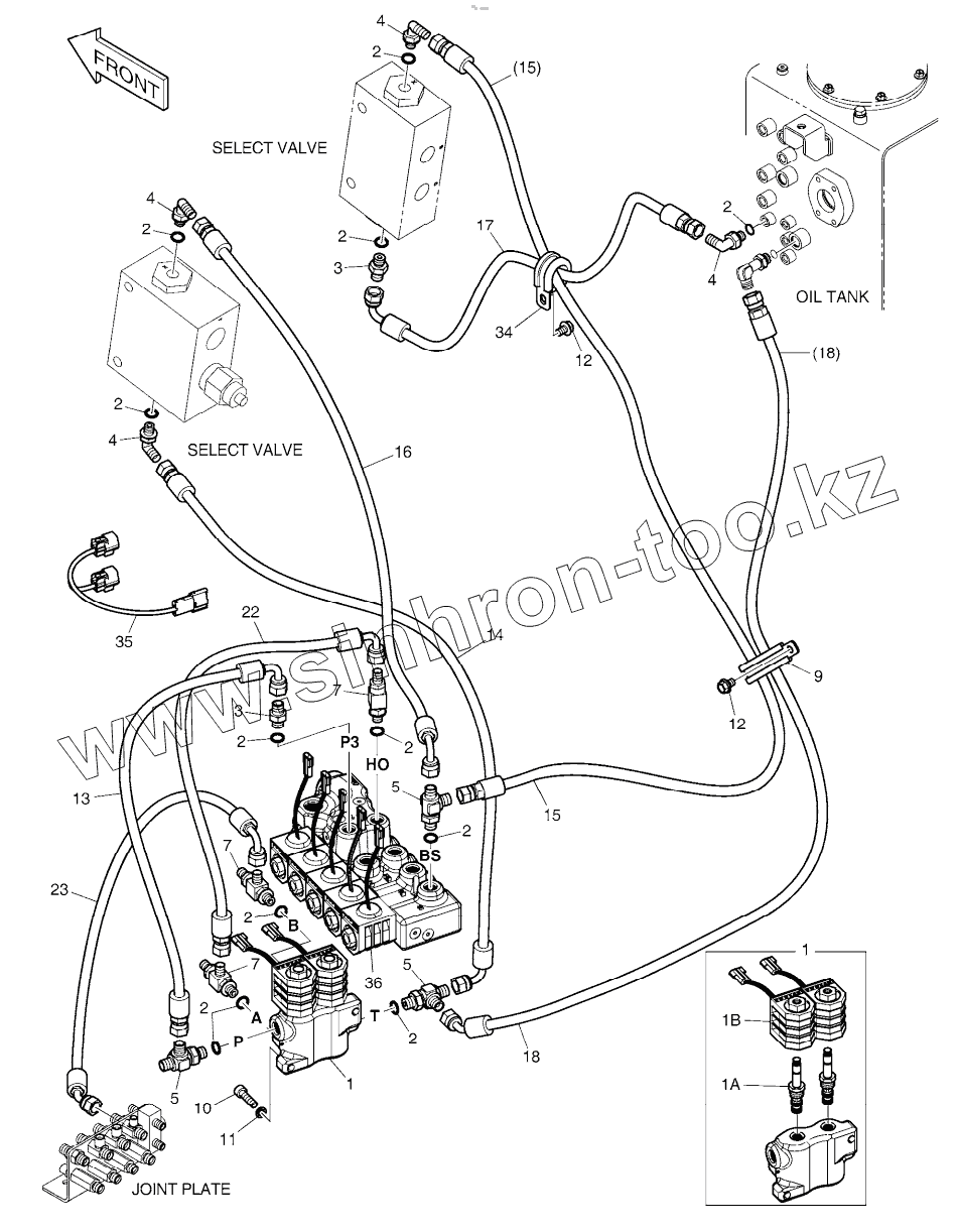 Каталог запасных частей к технике: Doosan DX225LCA. PILOT PIPING - TWO WAY (1)