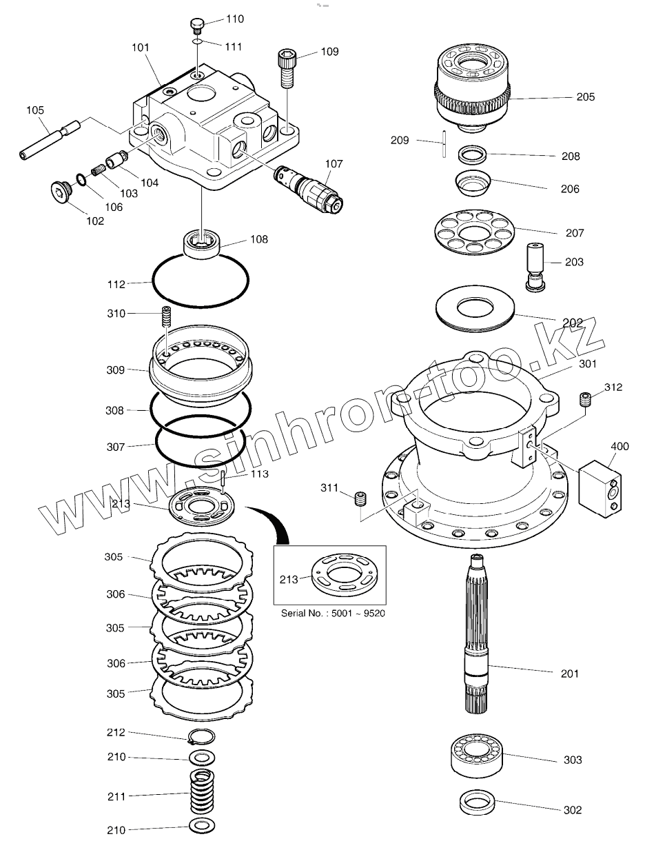 Каталог запасных частей к технике: Doosan DX225LCA. SWING MOTOR