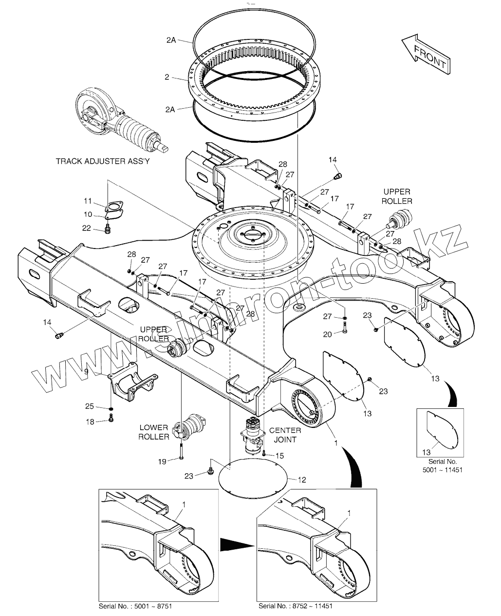 Каталог запасных частей к технике: Doosan DX225LCA. TRACK FRAME-LONG (DX225LCA)