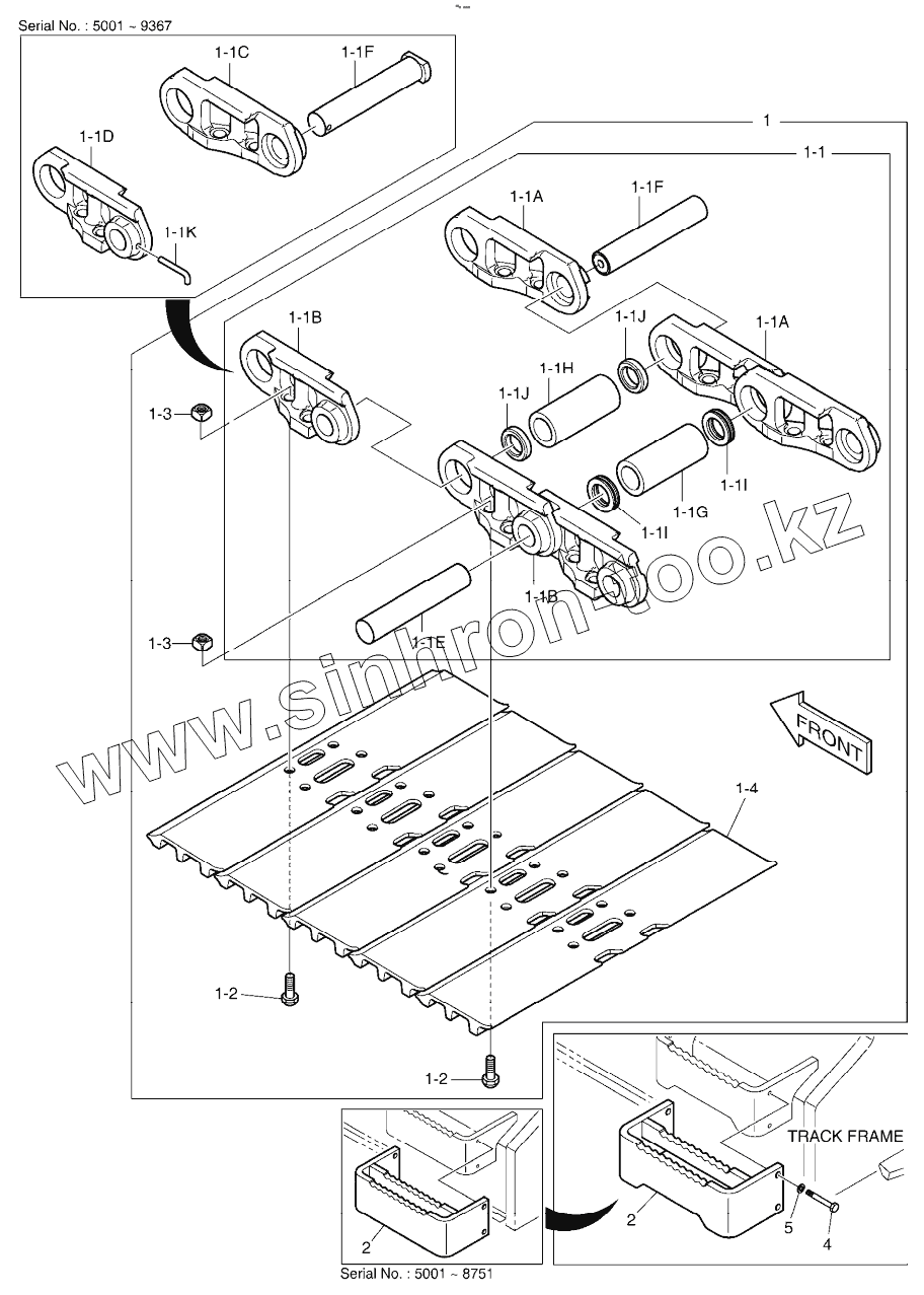 Каталог запасных частей к технике: Doosan DX225LCA. TRACK SHOE ASSY - 800G (DX225LCA)